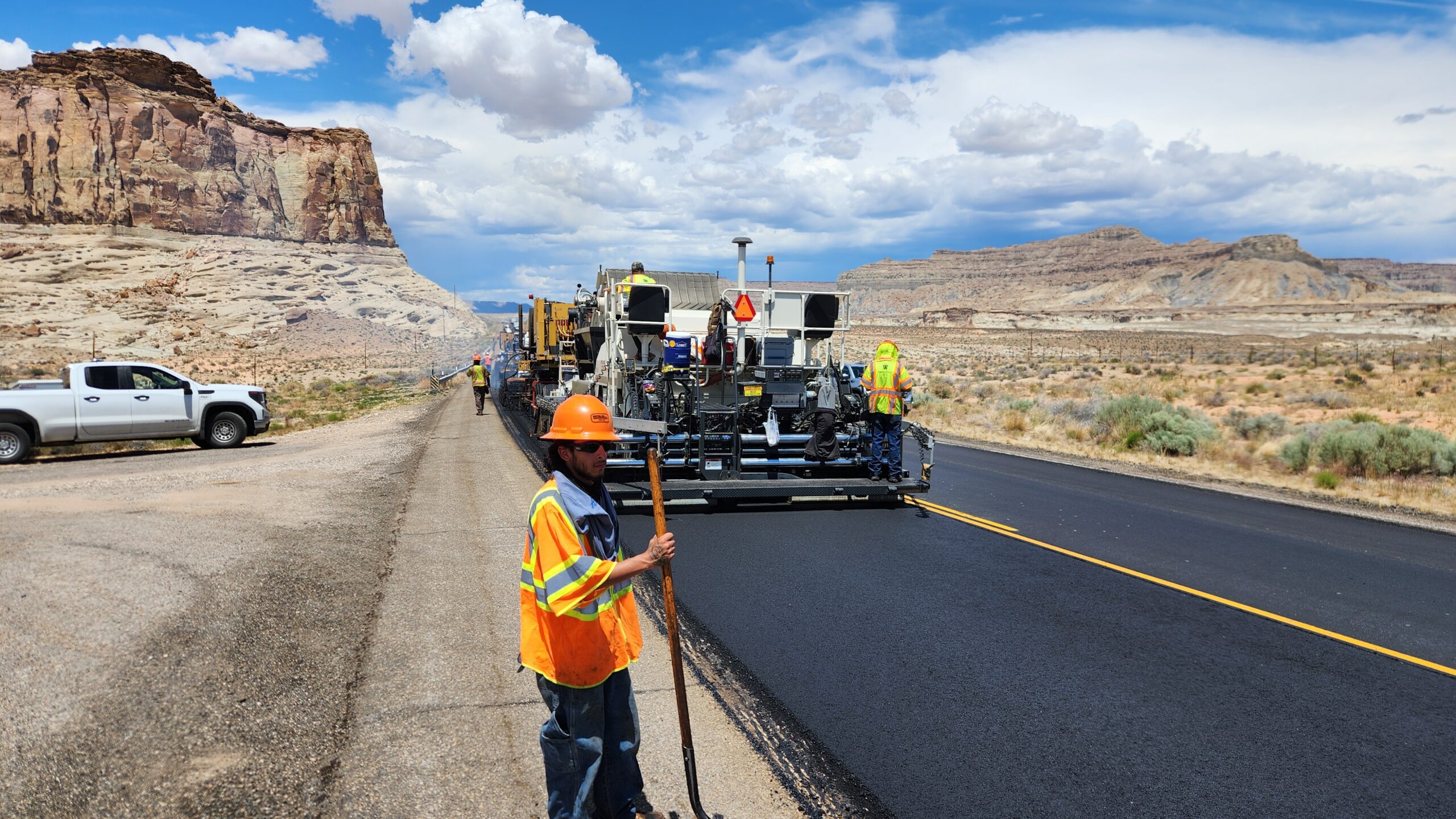 Our Colorado Hot In-Place crew started the year near the Utah/Arizona state line at Big Water, UT on US-89. The project was 12.5 miles of 24′ roadway.